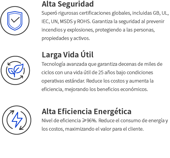 • Certificaciones mundiales: UL9540A, UL1973, IEC62619, IEC61000 y UN38.3