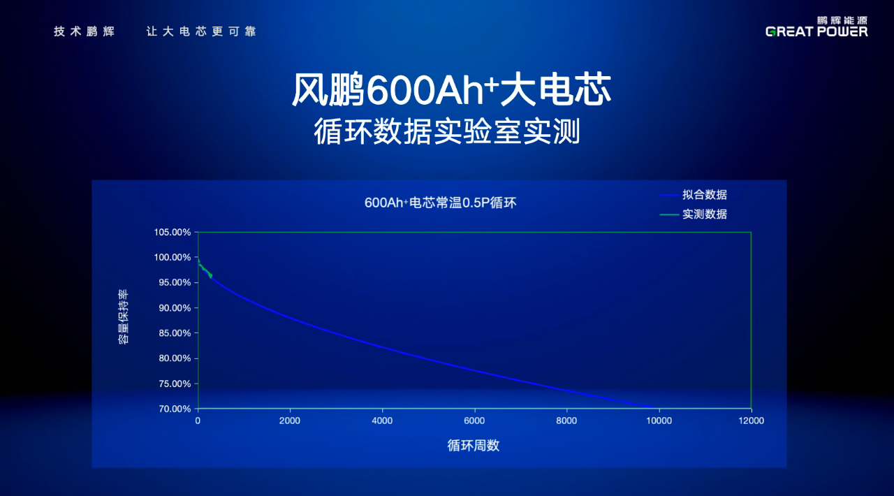 對于風(fēng)鵬600Ah+大電芯,鵬輝能源堅持迭代其關(guān)鍵性能,從循環(huán)和能效雙維度出發(fā),持續(xù)躍升客戶價值。