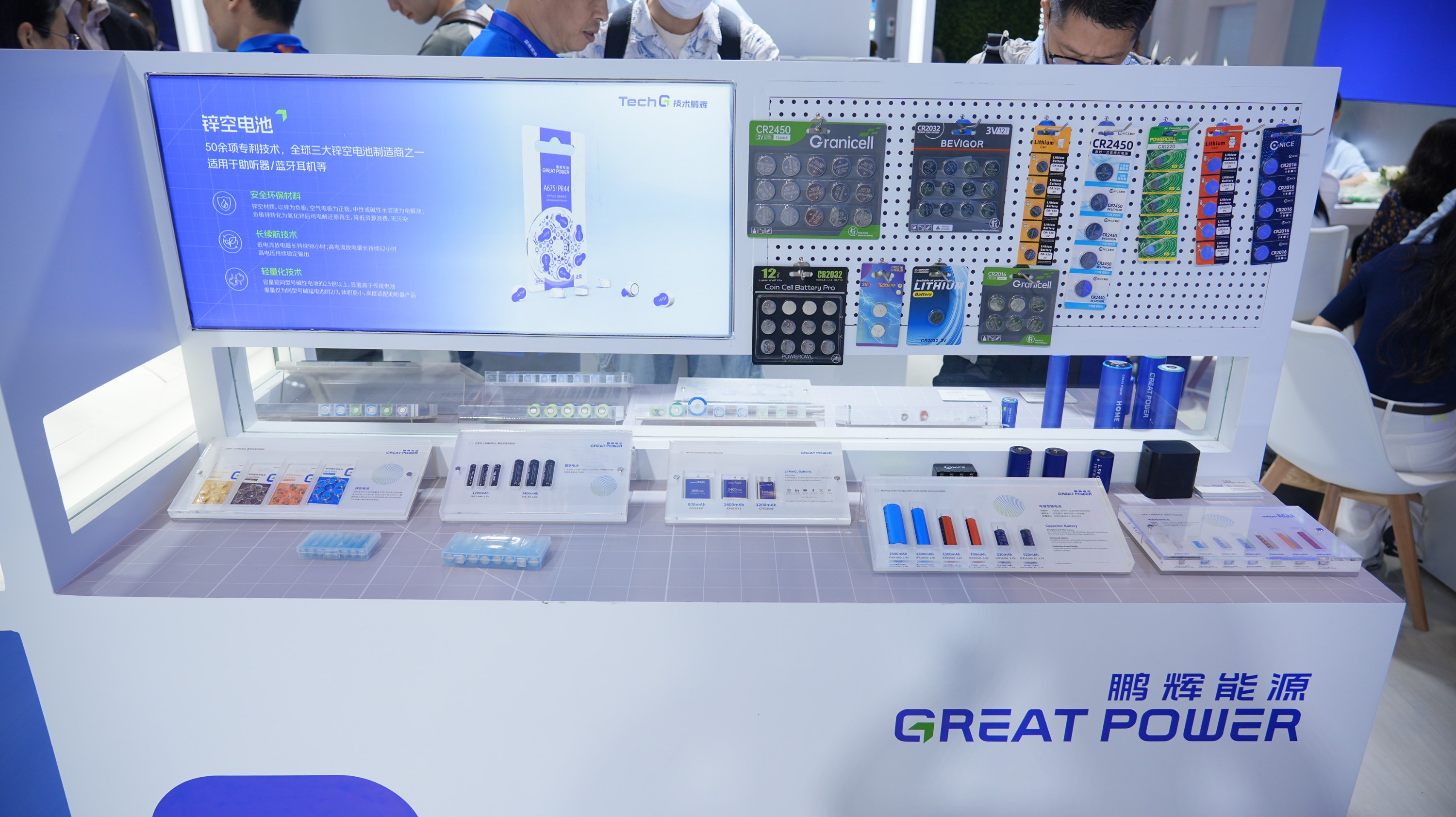 鵬輝能源Great Power深耕消費(fèi)電池24年,具有深厚的技術(shù)和產(chǎn)品沉淀。CIBF現(xiàn)場(chǎng),聚焦于消費(fèi)多維應(yīng)用場(chǎng)景,在小圓柱、軟包、扣式電池等產(chǎn)品領(lǐng)域,向客戶展示出最新的產(chǎn)品研發(fā)成果。針對(duì)復(fù)雜的戶外探險(xiǎn)設(shè)備和測(cè)繪儀器,鵬輝研發(fā)出搭載獨(dú)特低溫技術(shù)的一次鋰電池;聚焦高安全、長(zhǎng)續(xù)航、輕量化需求的助聽器/藍(lán)牙耳機(jī)產(chǎn)品,推出了具備50余項(xiàng)專利的鋅空電池等。