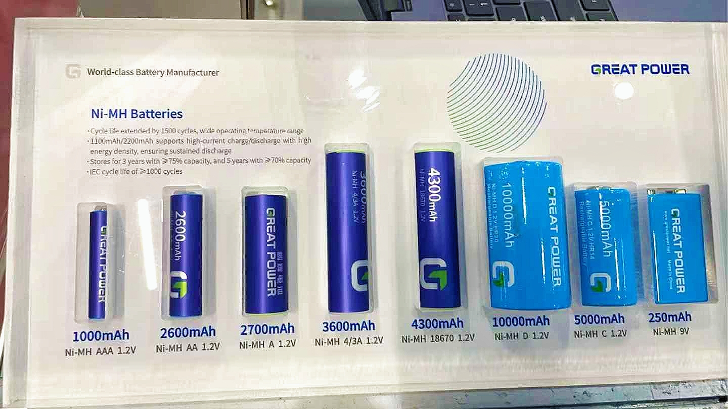 鎳氫電池方面,鵬輝能源Great Power基于其高安全性、低污染特性深化場(chǎng)景需求進(jìn)行產(chǎn)品創(chuàng)新。針對(duì)于測(cè)繪儀、血壓計(jì)等需長(zhǎng)期待機(jī)設(shè)備,推出低自放電型產(chǎn)品,經(jīng)三年待機(jī)電量仍超70%,確保設(shè)備即開即用;針對(duì)電動(dòng)工具、遙控車等間歇性高功率應(yīng)用場(chǎng)景,開發(fā)長(zhǎng)壽命型產(chǎn)品,IEC循環(huán)≥1000次,充分滿足高頻使用需求。