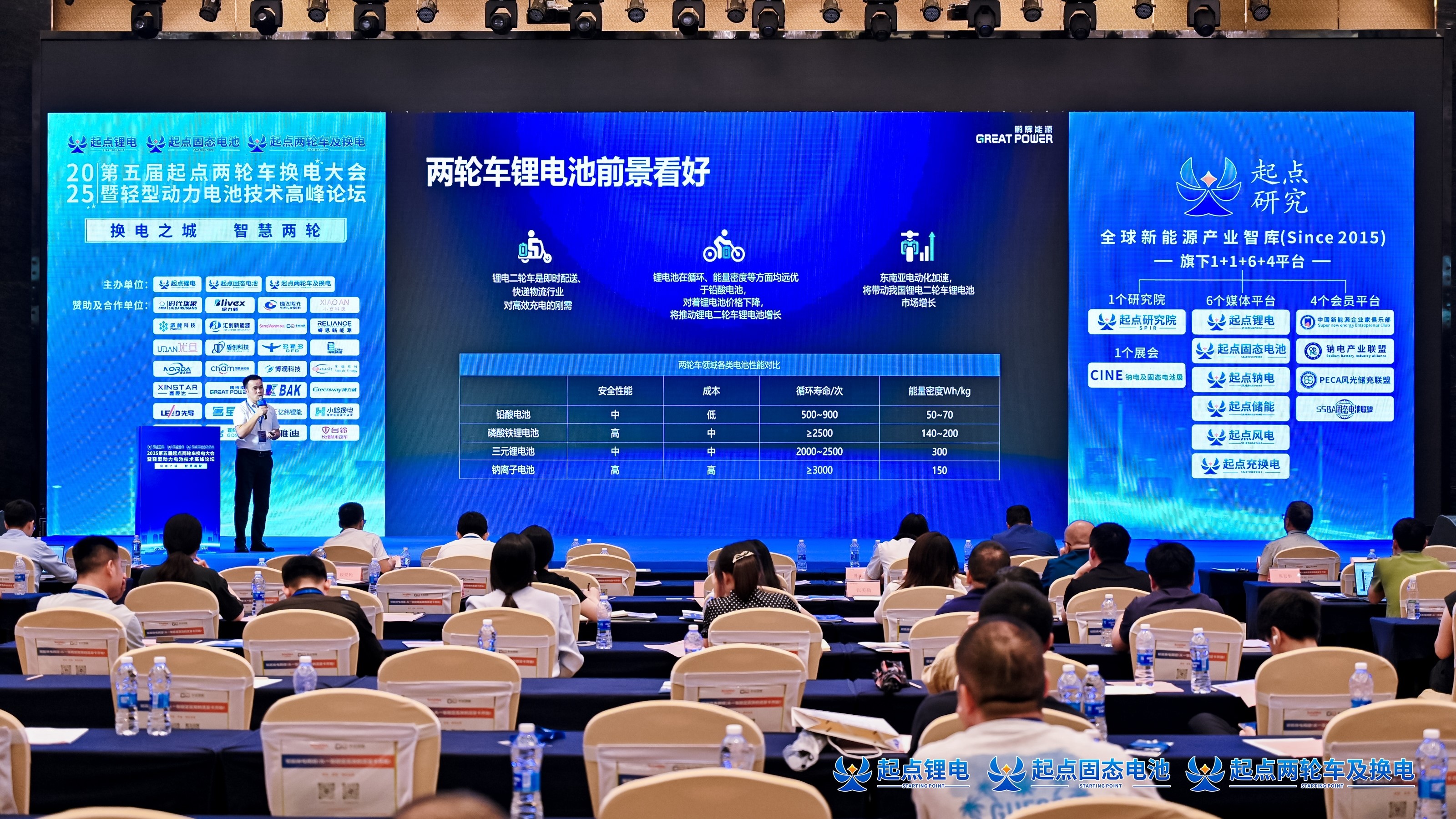 7月11日,2025 第五屆起點兩輪車換電大會及輕型動力電池技術高峰論壇于深圳順利舉辦。峰會現(xiàn)場,鵬輝能源Great Power憑借卓越的技術實力與市場表現(xiàn),榮獲“2025中國兩輪車鋰電池技術領導品牌”稱號。同時,輕型動力電池業(yè)務中心副總經理王楊應邀發(fā)表《高性能輕型動力電池綜合解決方案及應用》主題報告。當前,輕動電池市場在多重因素驅動下持續(xù)擴容。一方面,新能源政策支持結合即時配送、快遞物流行業(yè)高速發(fā)展,需求端持續(xù)釋放增長動能;另一方面,鋰電技術迭代與生產成本下降加速"鉛改鋰"進程,鋰電在共享出行、換電服務等新型應用場景滲透率提升。論壇現(xiàn)場,王楊指出:“隨著消費者使用輕動設備的時間延長以及駕駛場景的多樣化,其對電池的安全性能、能量密度、循環(huán)壽命等核心指標的要求持續(xù)提升;同時,防水、防震、寬溫域運行等特殊需求也日益凸顯。”