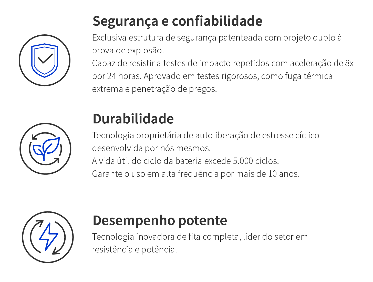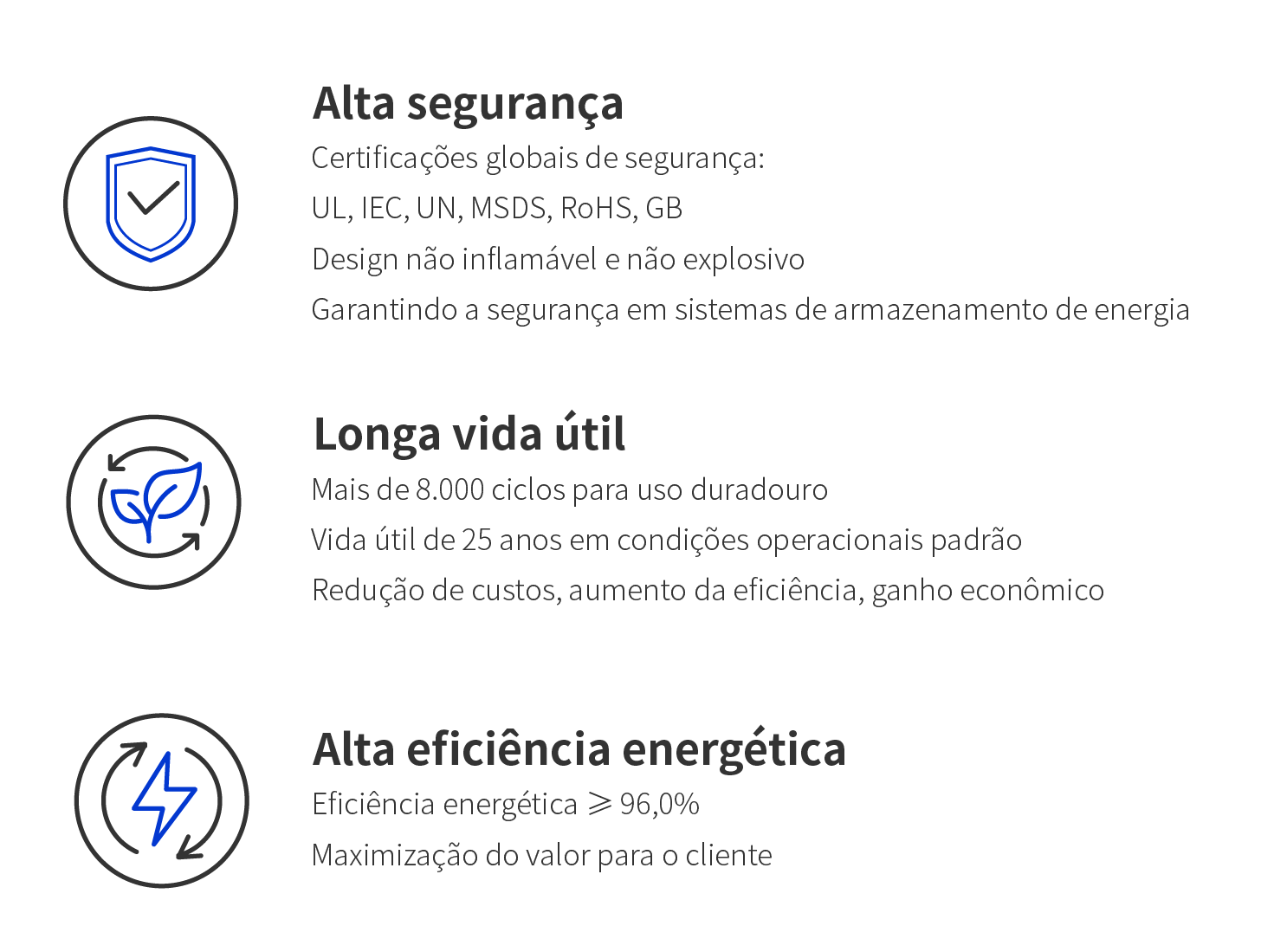 • Certifica??es mundiais: UL9540A, UL1973, IEC62619, IEC61000 e UN38.3